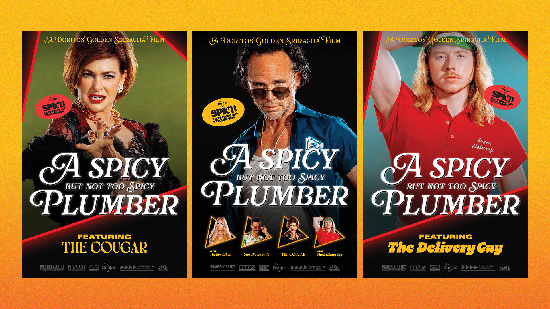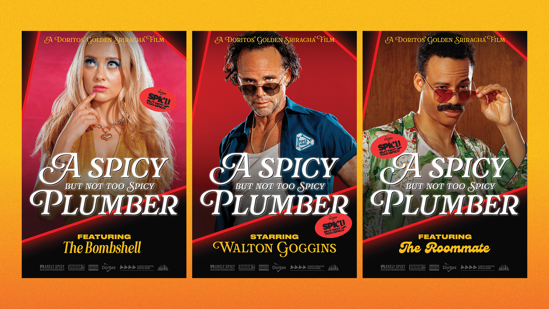 Design and creative direction for the spicy but not too spicy launch of Doritos Golden Sriracha Tortilla Chips. Doritos released an adult film that never gets too spicy, featuring the most iconic scenario ever — but for the first time in adult film history, the plumber is really just there to fix the pipes.